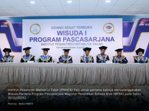 Redaksi IPMAFA — Institut Pesantren Mathali’ul Falah (IPMAFA) Pati untuk pertama kalinya menyelenggarakan Wisuda Perdana Program Pascasarjana Magister Pendidikan Bahasa Arab (MPBA) pada Sabtu (8/11/2025). Sebanyak 18 mahasiswa resmi dikukuhkan