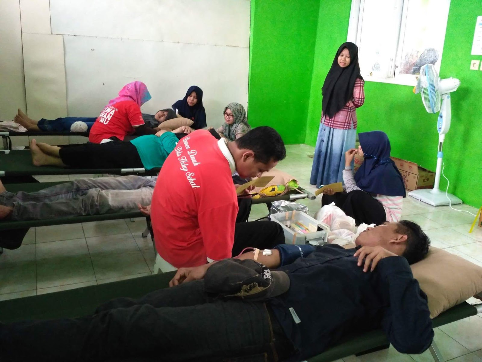 | Foto Petugas PMI Cab. Pati (baju Merah) Bertugas Melayani Para Pendonor |
