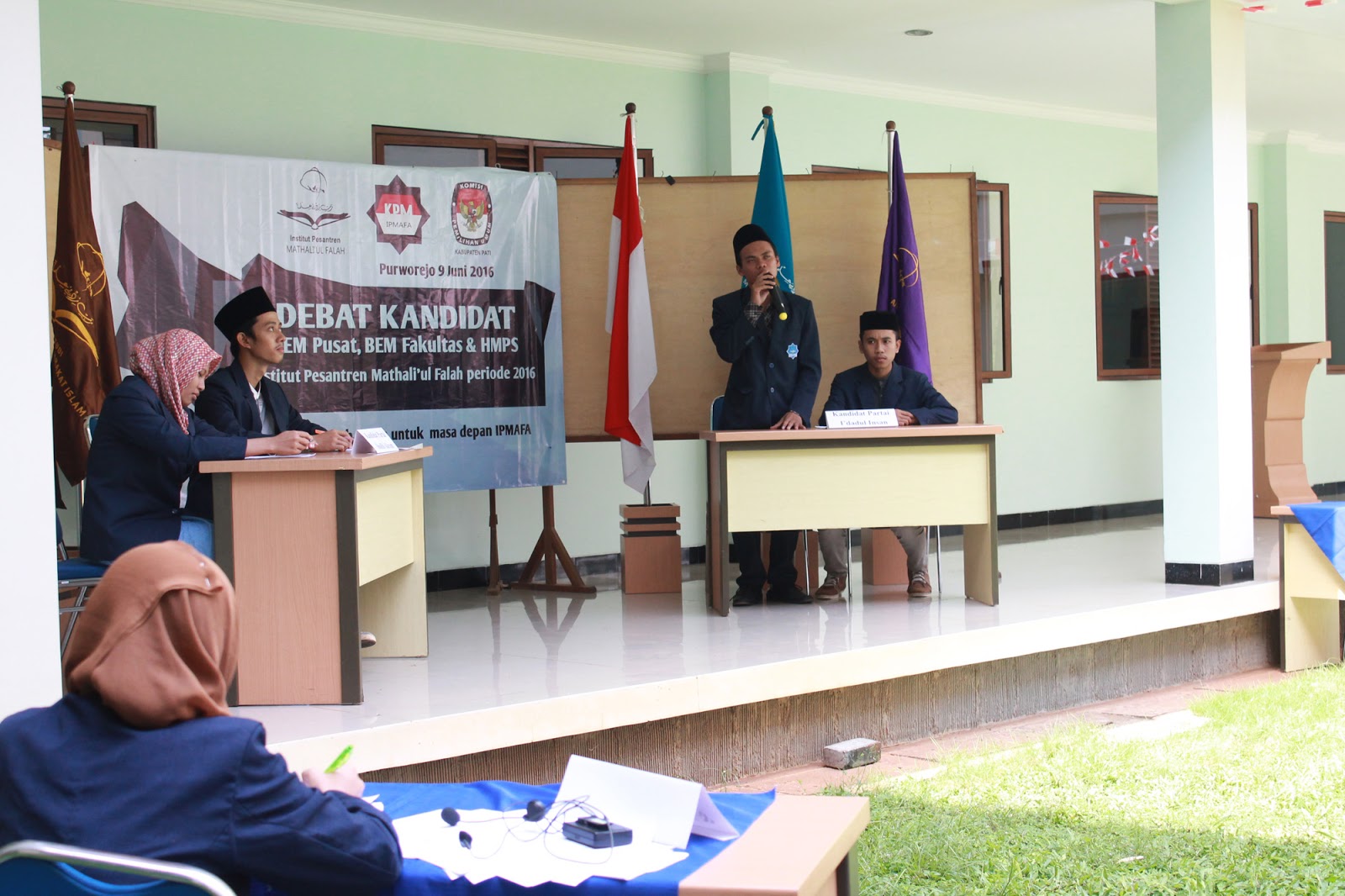 Badan Eksekutif Mahasiswa Institut Pesantren Matholiul Falah (BEM-IPMAFA) Margoyoso, mengadakan debat kandidat Presiden BEM mereka di kampus setempat, Kamis siang (9/6). Salah satu isu yang diangkat soal cara melawan maraknya politik uang.