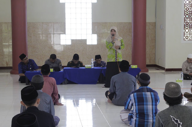 Dalam kegiatan tersebut, materi sosialisasi pengenalan dan pencegahan Covid-19 disampaikan langsung oleh Kepala Puskesmas Margoyoso Riyana.