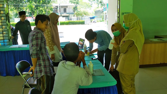 “Mahasiswa kami data, kemudian cek tensi darah dan pemeriksaan tanda vital, cek pemeriksaan fisiknya, untuk kemudian diterbitkan surat tanda sehat dari puskesmas,” tutur Dantik.