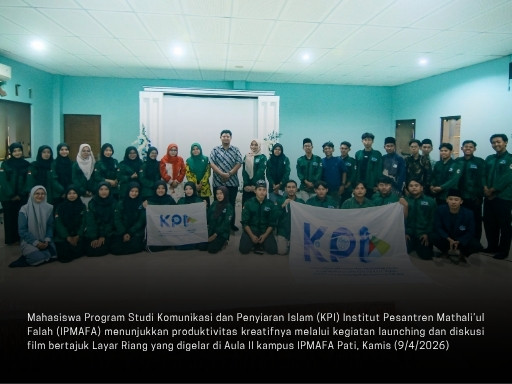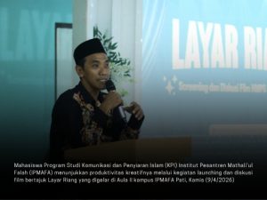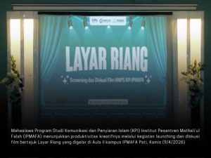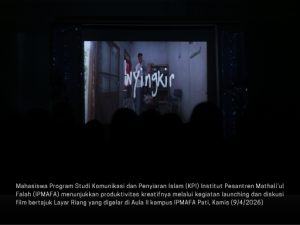 Redaksi IPMAFA – Mahasiswa Program Studi Komunikasi dan Penyiaran Islam (KPI) Institut Pesantren Mathali’ul Falah (IPMAFA) menunjukkan produktivitas kreatifnya melalui kegiatan launching dan diskusi film bertajuk Layar Riang yang digelar di Aula II kampus IPMAFA Pati, Kamis (9/4/2026). Kegiatan ini menampilkan tiga karya film mahasiswa berjudul Dzon, Nyingkir, dan Welas, yang mengangkat realitas sosial yang dekat dengan kehidupan sehari-hari.