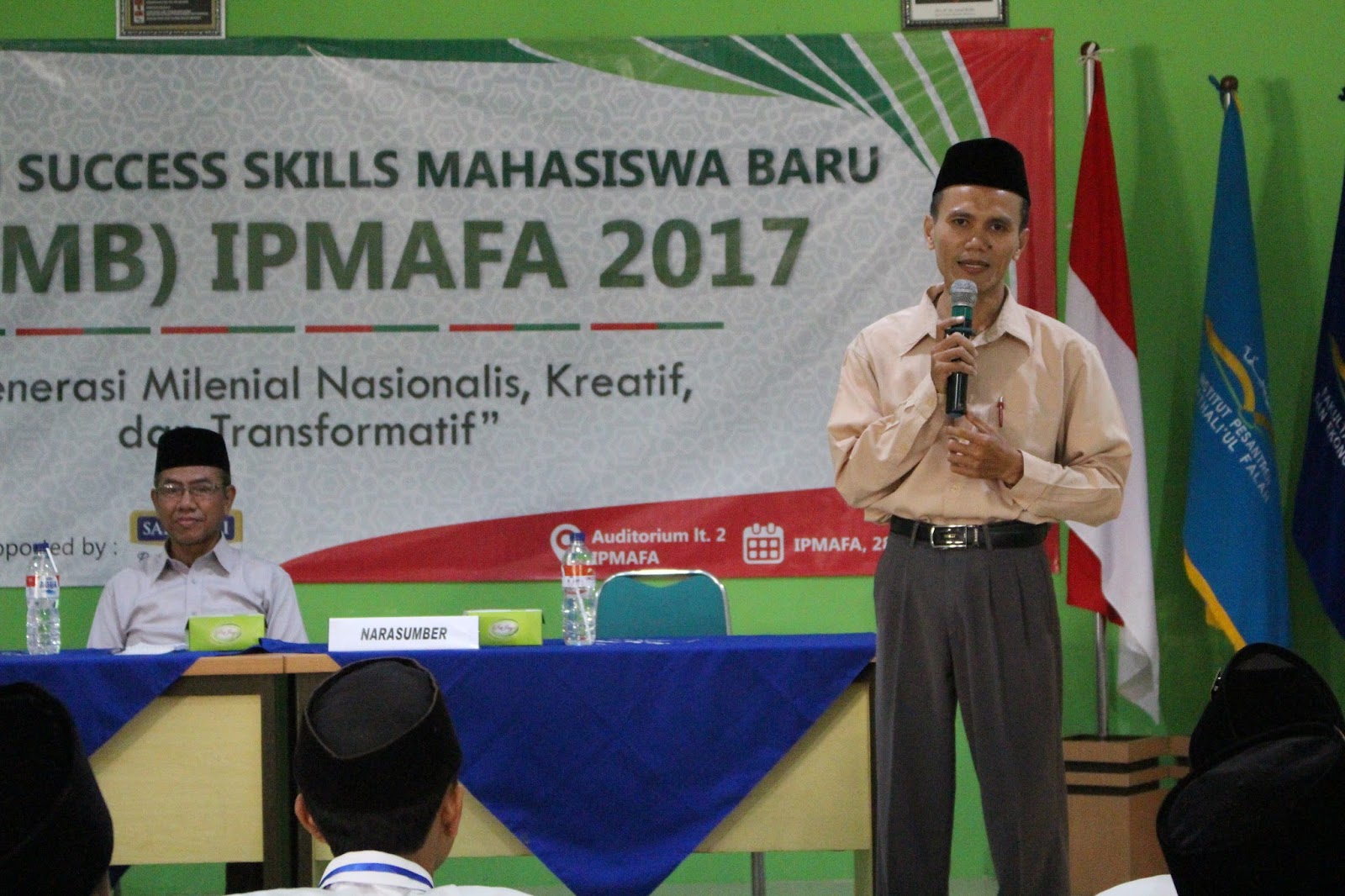 Di depan 278 mahasiswa baru, Wakil Rektor I Ahmad Dimyati dalam paparannya menyampaikan bahwa ciri khas IPMAFA adalah adanya lingkungan kampus dan mahasiswa yang mengamalkan nilai-nilai pesantren. Nilai-nilai Pesantren menjadi pilar dalam Perguruan Tinggi yang tertuang dalam Nilai Dasar Sholih Akrom.