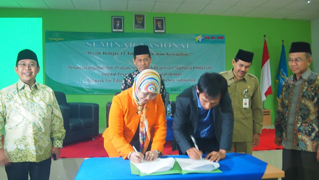 Pati, Koordinator Nasional JPPI Abdullah Ubaid dan Inayatul Ulya dari Program Studi Pendidikan Guru Madrasah Ibtidaiyah (PGMI) IPMAFA didaulat menandatangani MoU Kemitraan pendidikan kedua lembaga. Penandatanganan MoU IPMAFA-JPPI disaksikan Rektor dan jajaran dosen serta pengurus yayasan induk IPMAFA Pati Senin (27/2).