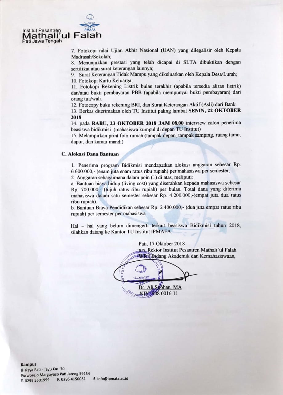 Pengumuman Beasiswa Bidikmisi IPMAFA 2018