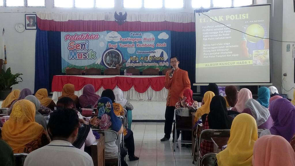 Dalam kegiatan pelatihan ini para peserta diberikan pemahaman tentang dasar-dasar musik anak, cara membuat karya, berbagai macam tepuk tangan yang menyenangkan, gerak lagu dan lain sebagainya. Bukan hanya itu peserta yang beruntung juga mendapatkan doorprize dari narasumber. Hal ini semakin menambah semangat para peserta dalam mengikuti kegiatan. Sebelum selesai acara para peserta juga diminta untuk mengarang sebuah lagu anak, yang nantinya harus mereka praktekkan saat mengajar mapun bersama anak-anaknya.Sebelumnya Kak Adi Kitana atau yang memiliki nama lengkap Setyoadi Purwanto, M.Pd juga mengisi kuliah umum di kelas PIAUD IPMAFA semester II. Kuliah ini dimaksudkan untuk membekali para mahasiswa mengenal musik-musik anak agar mereka memiliki dasar tentang bermusik sebelum nantinya mendapatkan mata kuliah seperti estetika instrumental, vocal, koreografi dan sebagainya.