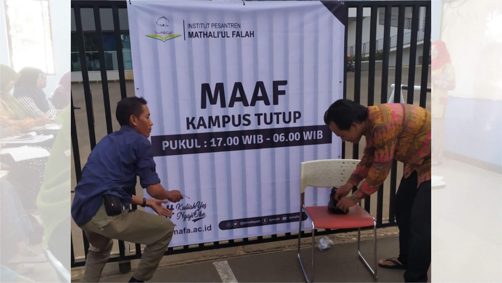 Berita IPMAFA- Sejak diterbitkannya Surat Edaran (SE) Nomor: 56/90/IPMAFA/III/2020, Tentang Pencegahan Penyebaran Covid-19, Institut Pesantren Mathali’ul Falah (IPMAFA) Pati meniadakan kuliah tatap muka secara langsung sejak tanggal 16-31 Maret 2020 dan akan dievaluasi secara berkala sesuai perkembangan yang berlaku.