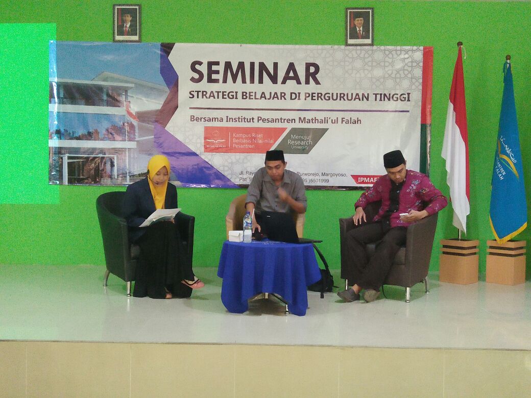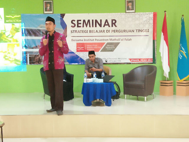 Hal ini menjadi dasar penyelenggaraan seminar tentang “Strategi Belajar di Perguruan Tinggi” di IPMAFA kemarin, Sabtu,(22/7/2017). Acara bertempat di auditorum lantai 2 IPMAFA dan dihadiri oleh lima puluhan alumnus dari beberapa sekolah menengah keatas dan sederajat.