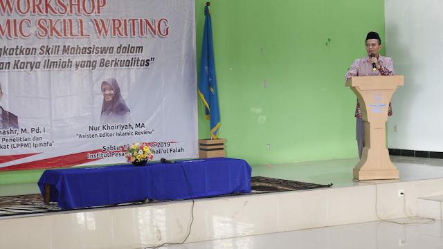 Demikian sambutan Wakil Rektor I Bidang Akademik dan Kemahasiswaan Institut Pesantren Mathali’ul Falah (Ipmafa) Dr. A. Dimyati, M.Ag dalam Academic Skill Writing bertajuk Meningkatkan Skill Mahasiswa dalam Penulisan Karya Ilmiah yang Berkualitas di Ruang Auditorium 2 (12/10/19).